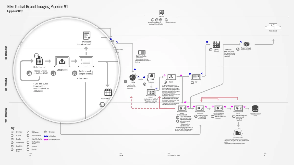 Each person in the studio had a specific workflow which we charted.